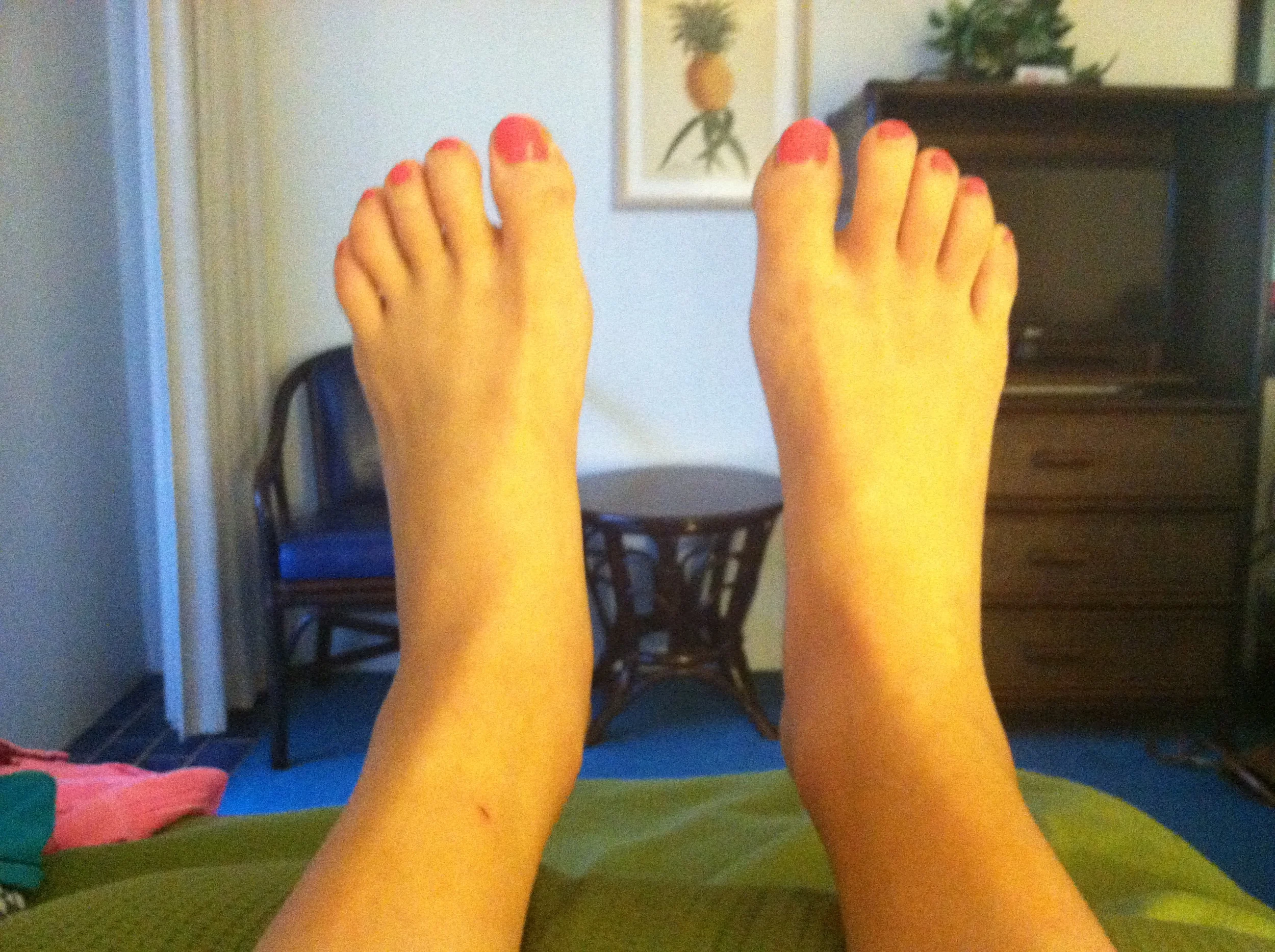 My feet remained swollen, resembling those of a woman in her third trimester of pregnancy, for several days as well. Not even compression socks aided in returning them to their normal size.